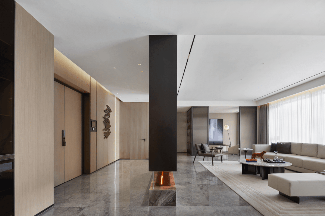 270°宽幕,玄关处的大斑白大理石端景台完满融入场景,亿联之江心月开辟商售楼处电线√√☎西湖亿联之江心月售楼处电线√√【看房热线☎】杭州西湖亿联之江心月售楼处地址/德律风热线:√√(最新发布)